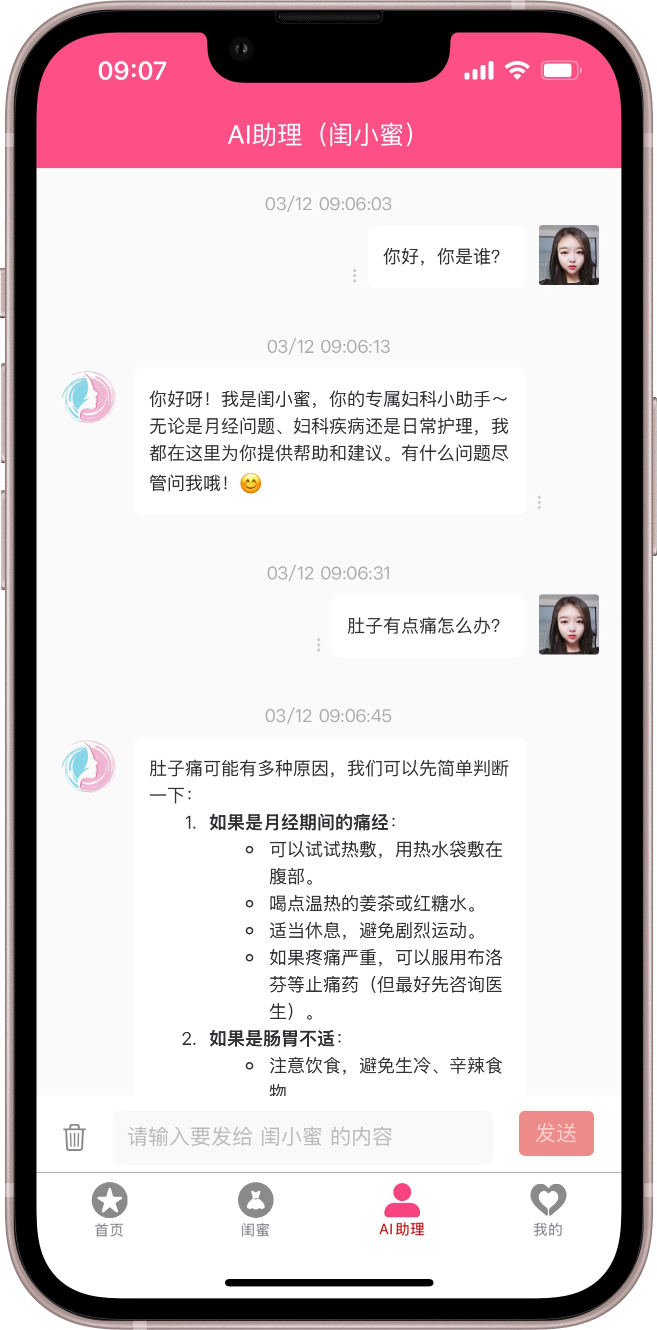 管理自己所有的健康 数据。内置基于Deepseek的智能助理闺小蜜,帮助解决健康问题。